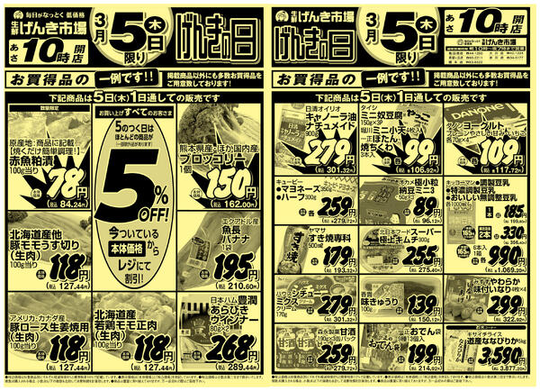 北海道函館市大川町4−47 げんき市場 げんきの日/2026年3月5日(木)/げんき市場全店舗のみ(夢市場店舗・乃木市場は除く)new
