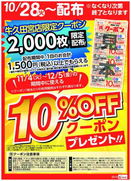 茨城県牛久市田宮町325-3    2025年10月28日〜11月2日までマル得クーポン配布中!