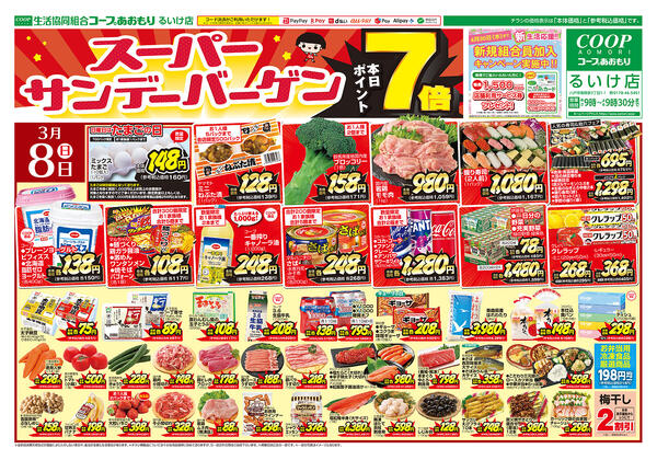 青森県八戸市南類家3−1−1 コープあおもり るいけ店 お買い得情報【3月8日~10日】2026年03月08日(日)〜2026年03月10日(火)