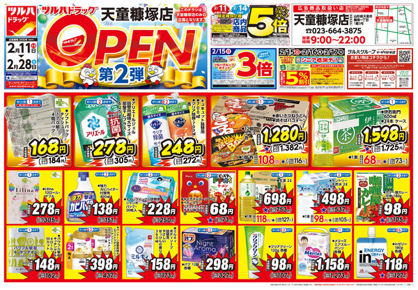 山形県天童市糠塚1-1-3 2/11号 ツルハドラッグ 天童糠塚店 OPEN〈第2弾〉2月11日~2月28日