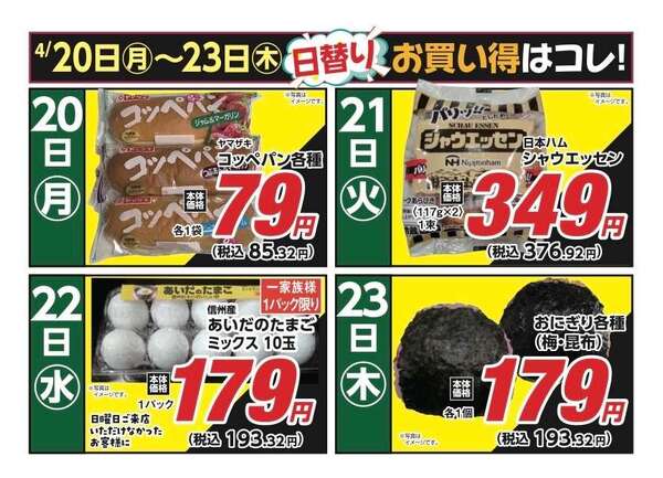 安原店・東御店 4月20日〜23日 日替わり