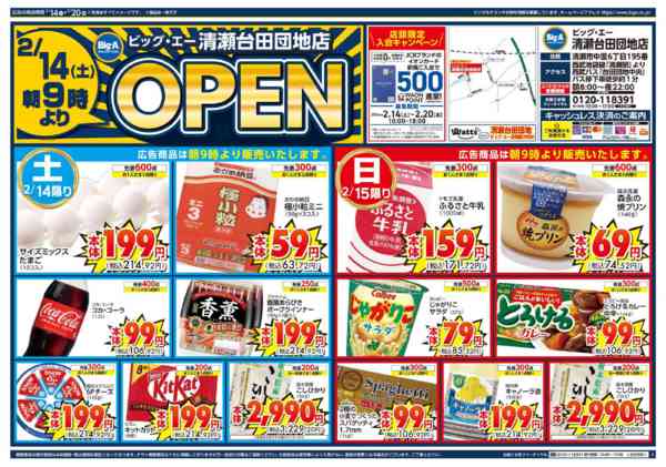 東京都清瀬市中里6-195 2026年2月14〜20日までビッグ・エー清瀬台田団地店OPEN第1弾new
