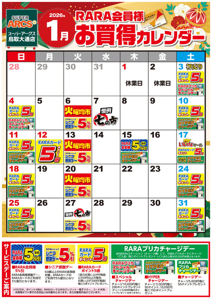 北海道釧路市鳥取大通2−2−24 【スーパーアークス鳥取大通店】RARA会員様1月お買得カレンダー1月1日~1月31日new