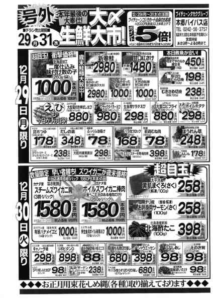 福島県大沼郡会津美里町字思堀向34 2025年12月29〜31日まで号外!大〆生鮮大市! 本年最後の大奉仕!