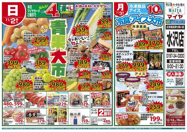 岩手県奥州市水沢字八反町12 11/2(日)青果大市& 3(月)冷食・アイス大市& 4(火)ホワイトチューズデー& 5(水)グリーンウェンズデー