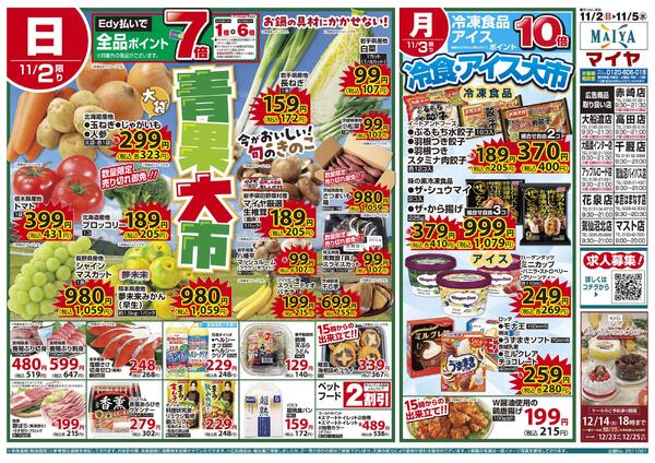 岩手県一関市花泉町涌津字二ノ町22 11/2(日)青果大市& 3(月)冷食・アイス大市& 4(火)ホワイトチューズデー& 5(水)グリーンウェンズデー