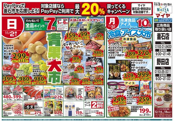 岩手県釜石市野田町2−3−1 11/2(日)青果大市& 3(月)冷食・アイス大市& 4(火)ホワイトチューズデー& 5(水)グリーンウェンズデー