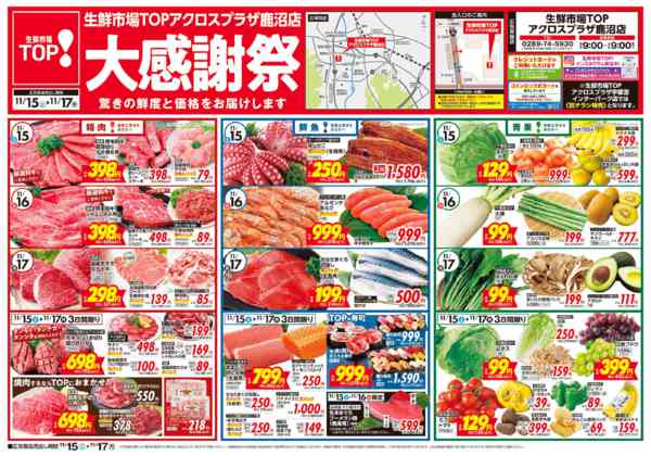 栃木県足利市堀込町字宮前250−1生鮮市場TOPアクロスプラザ鹿沼店