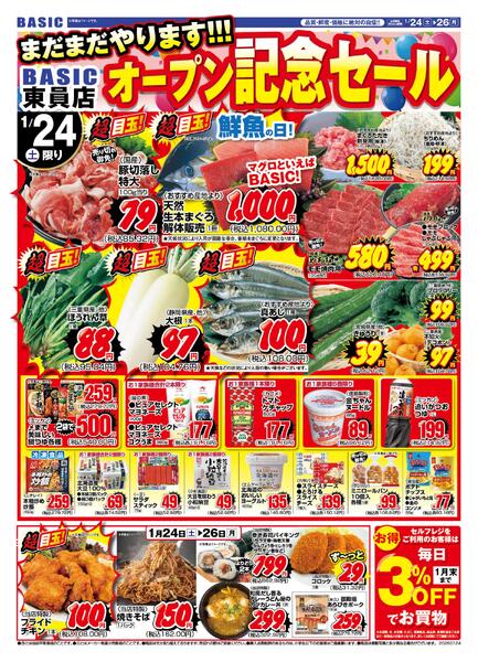 三重県員弁郡東員町六把野新田字嶋畑33-1 BASIC 東員店 オープン記念セール!!1月24日(土)~1月26日(月)