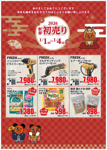 長野県長野市権堂町2196-1 2026年1月1〜4日までDIY・ペットの初売りアイテムnew