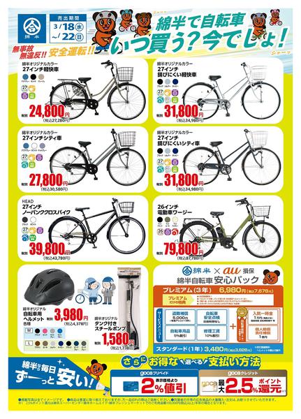 2026年3月18〜22日まで綿半で自転車いつ買う!?今でしょ!