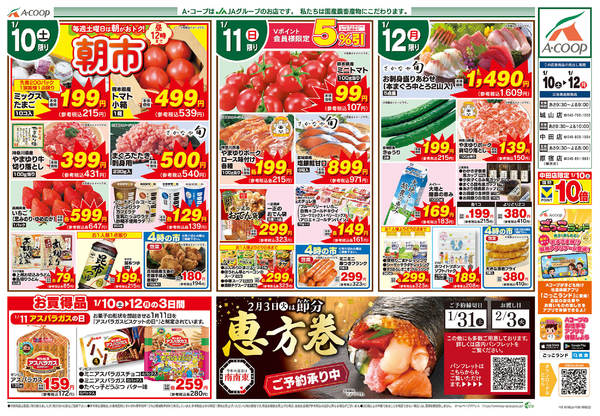山形県飽海郡遊佐町吹浦字苗代37 ふじしま店・やわた店・にしき町店の3店舗で開催いたします。