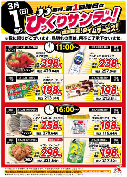 2026年3月1日限りびっくりサンデー!タイムサービスnew
