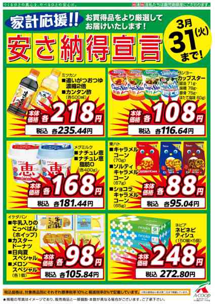 2026年3月1〜31日まで3月安さ納得宣言