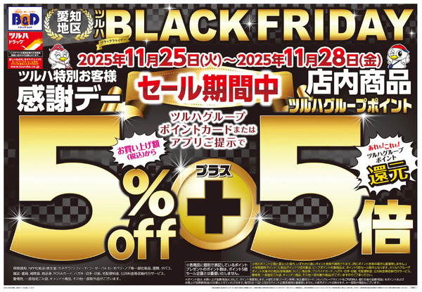 愛知県名古屋市西区中小田井2−140 11/25号 ツルハ・B&D BLACK FRIDAY11月25日~11月28日new