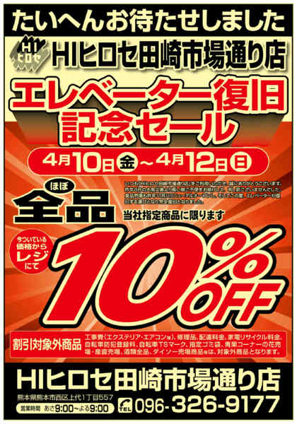 熊本県熊本市西区上代1−557 2026年4月10〜14日まで田崎店号外!