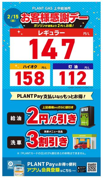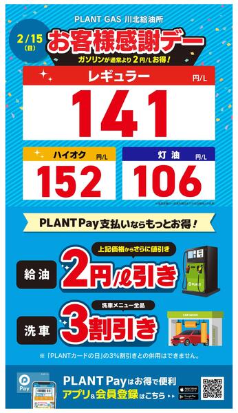石川県能美郡川北町字朝日63 本日のガソリン価格new